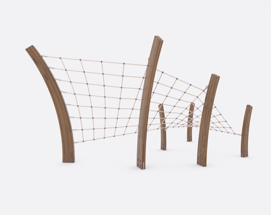 Состоит из опорных стоек и канатной сетки. Для большего комфорта, сетка оснащена пластиковыми уступами.