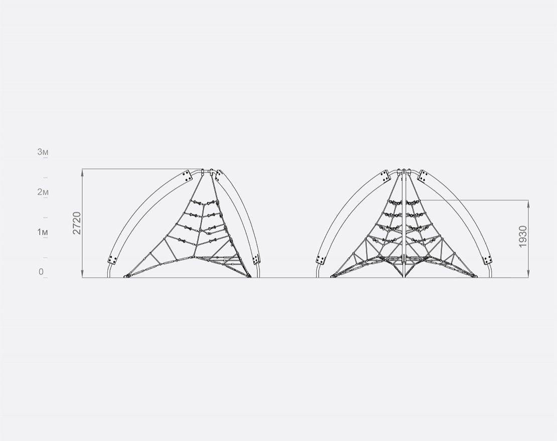 Состоит из опорных стоек и канатной сетки. Для большего комфорта, сетка оснащена пластиковыми уступами.