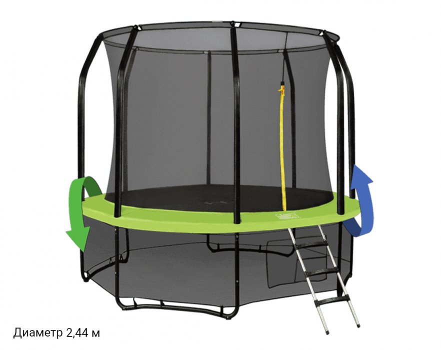 Внешний вид. Серия Air Game имеет двухсторонний защитный мат. Меняйте дизайн батута по своему усмотрению! Наслаждайтесь солнечно-зеленым цветом мата или переверните его на классический голубой.