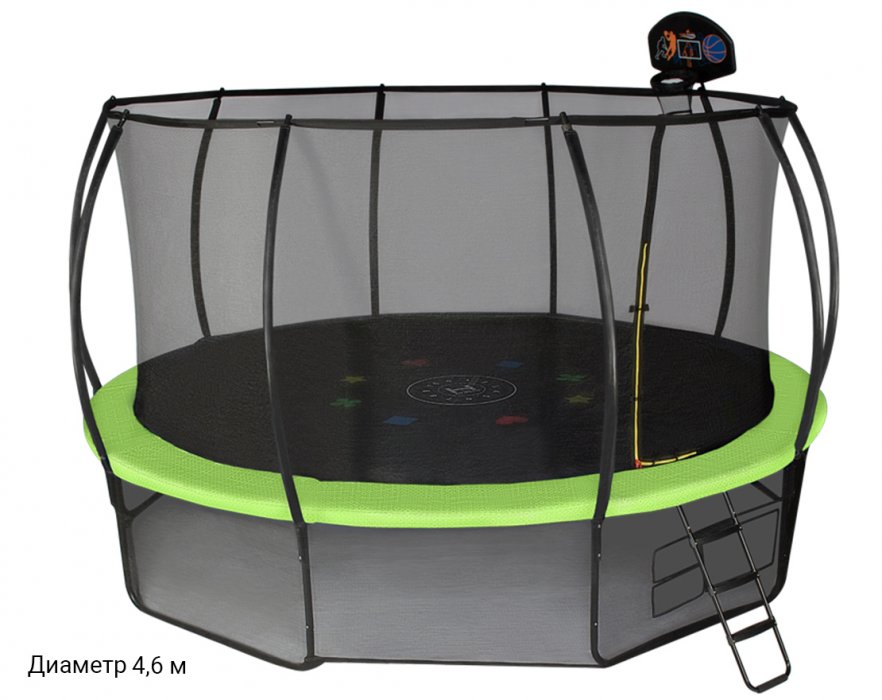 Безопасность. Благодаря инновационному, прямому, креплению защитной сети к прыжковому полотну, была достигнута максимальная защита от пружин при падении. Плетение настолько мало, что исключена любая возможность травмы, даже для самых маленьких пользователей.