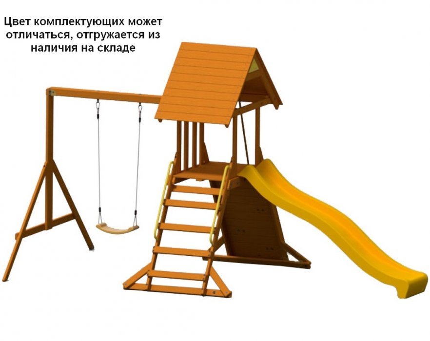 Детская площадка изготовлена из цельной древесины сосны, тщательно просушенной и обработанной пропиткой против гниения и насекомых.