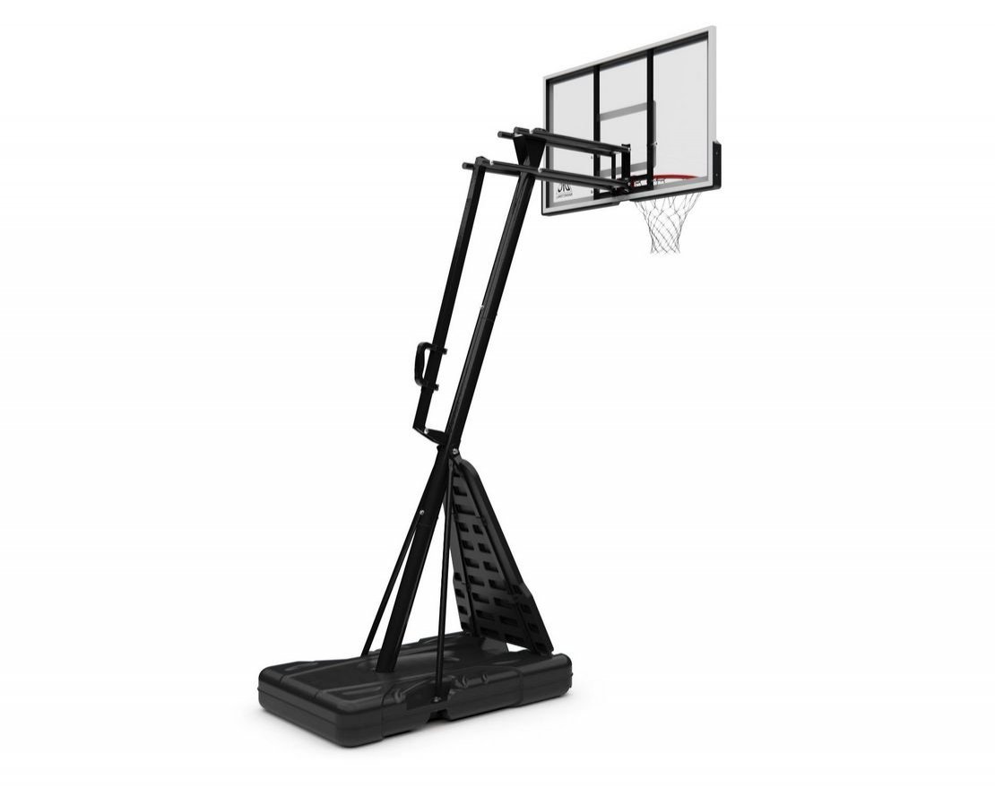 Портативная баскетбольная стойка совмещает в себе мобильность и обеспечивает отскок мяча, как на профессиональной площадке. Благодаря усиленной конструкции удалось добиться увеличенного вылета щита, при сохранении компактности размещения. Он регулируется по высоте в диапазоне от 230 до 305 см, имеет защитное покрытие Poly Pade в нижней части. В основание стойки (объем 114,7 л) необходимо залить воду или засыпать песок в качестве утяжелителя.