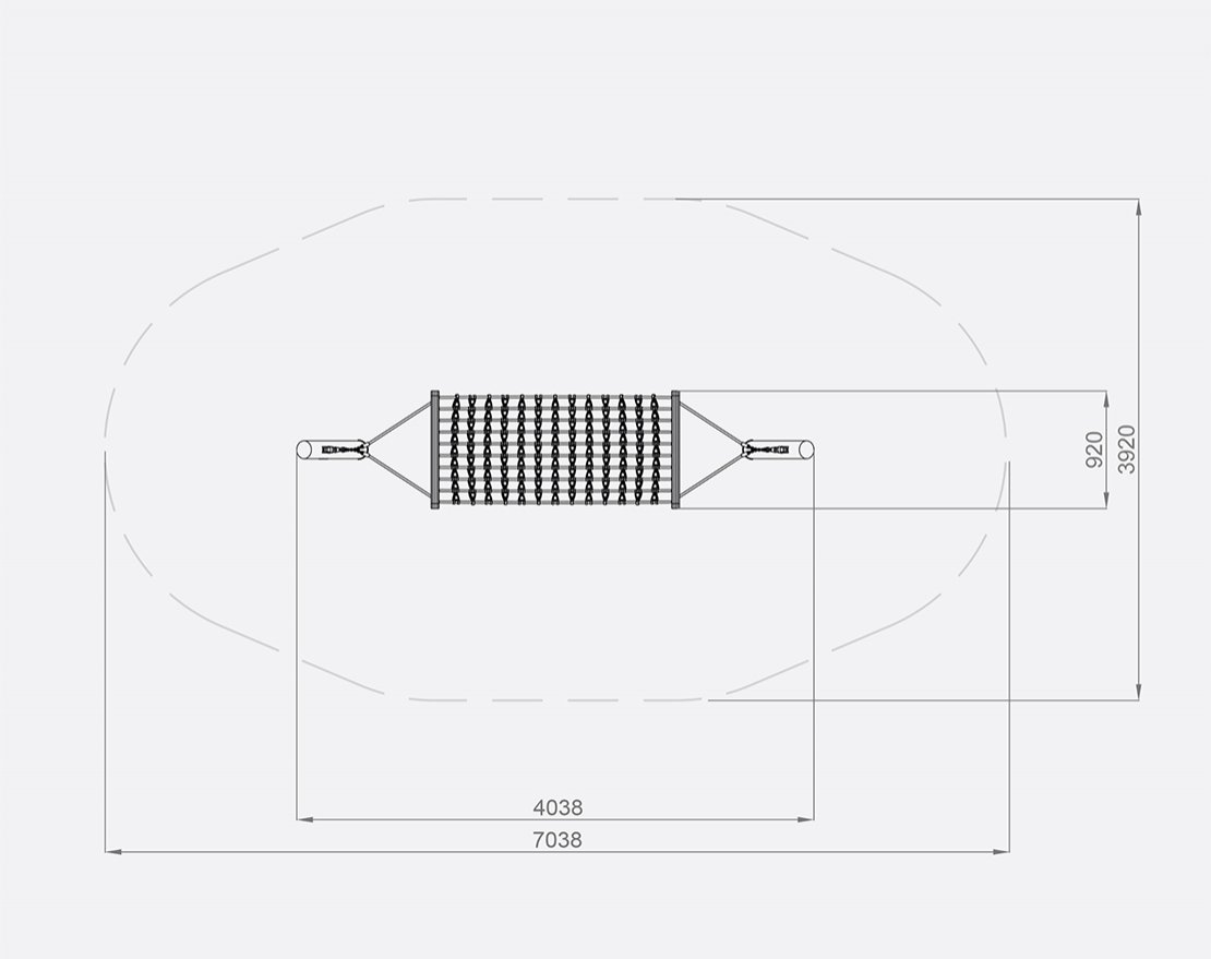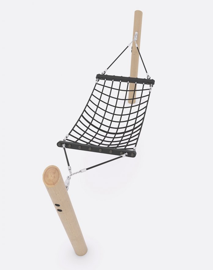 Состоит из опорных стоек и гамака. Гамак выполнен из высокопрочного каната и соединителей из полиамида, которые надёжно фиксируют канат и выдерживают большие нагрузки. Для большей безопасности и комфорта, соединители имеют рифлёную антискользящую поверхность.