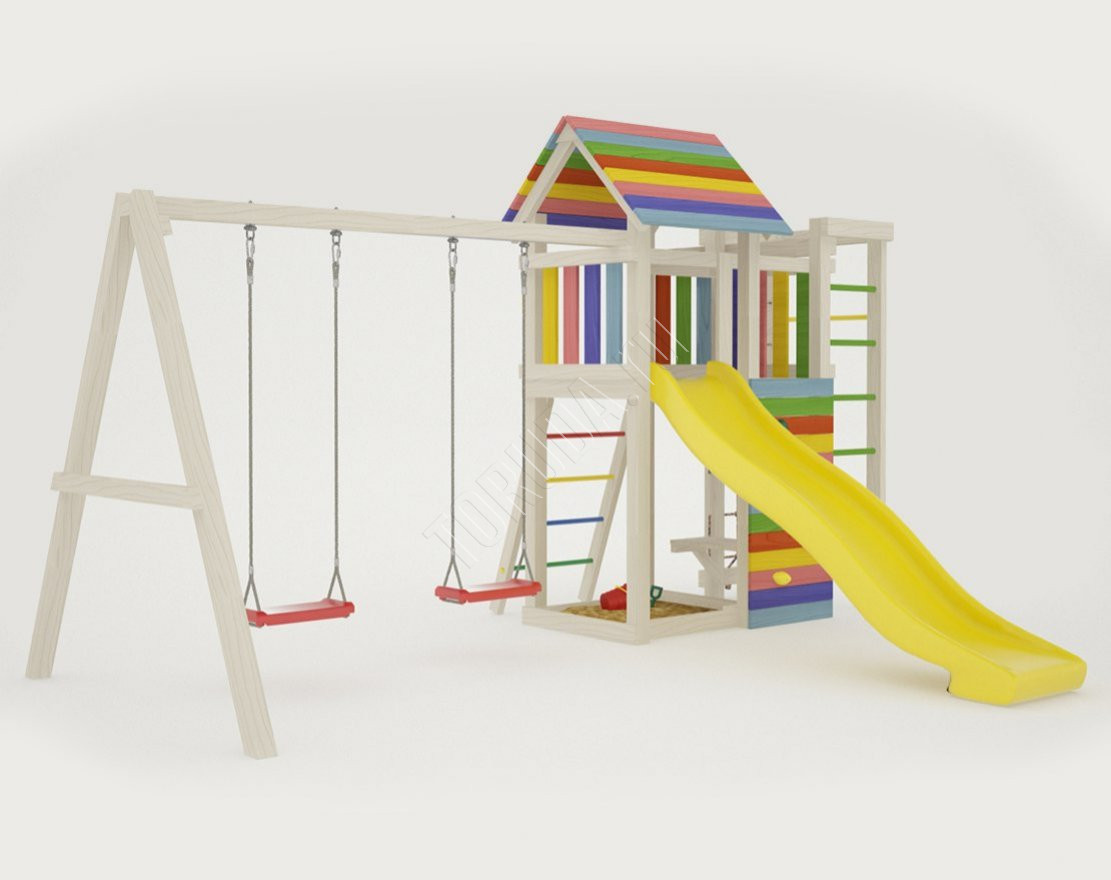 - Это универсальное решение для активного досуга и позитивного настроения непосед с трех лет. Комплекс безопасен – конструкция, качество древесины и подвижных элементов соответствуют ГОСТ. Основным материалом является экологичный клееный брус, балки которого отшлифованы и имеют закругленные края.