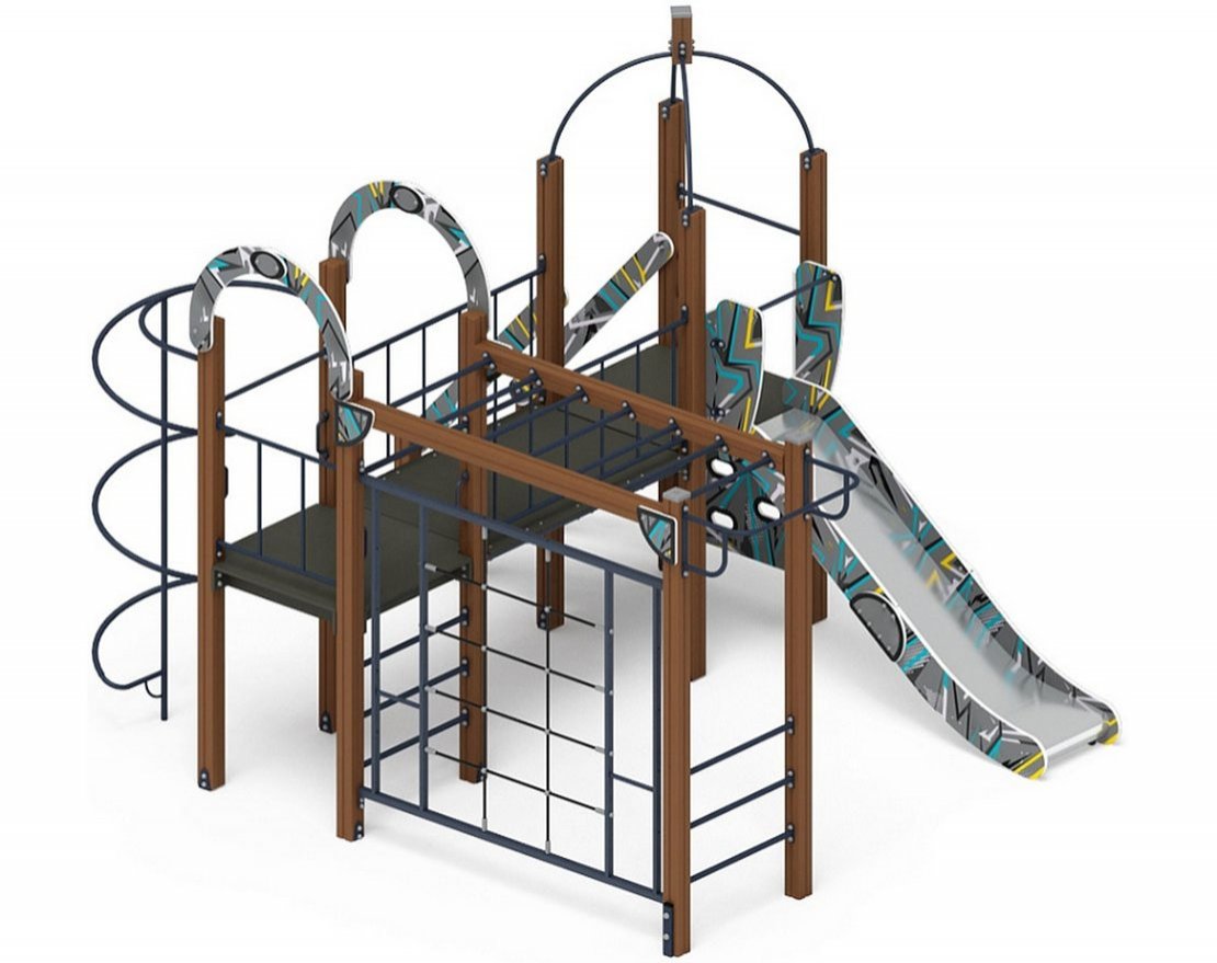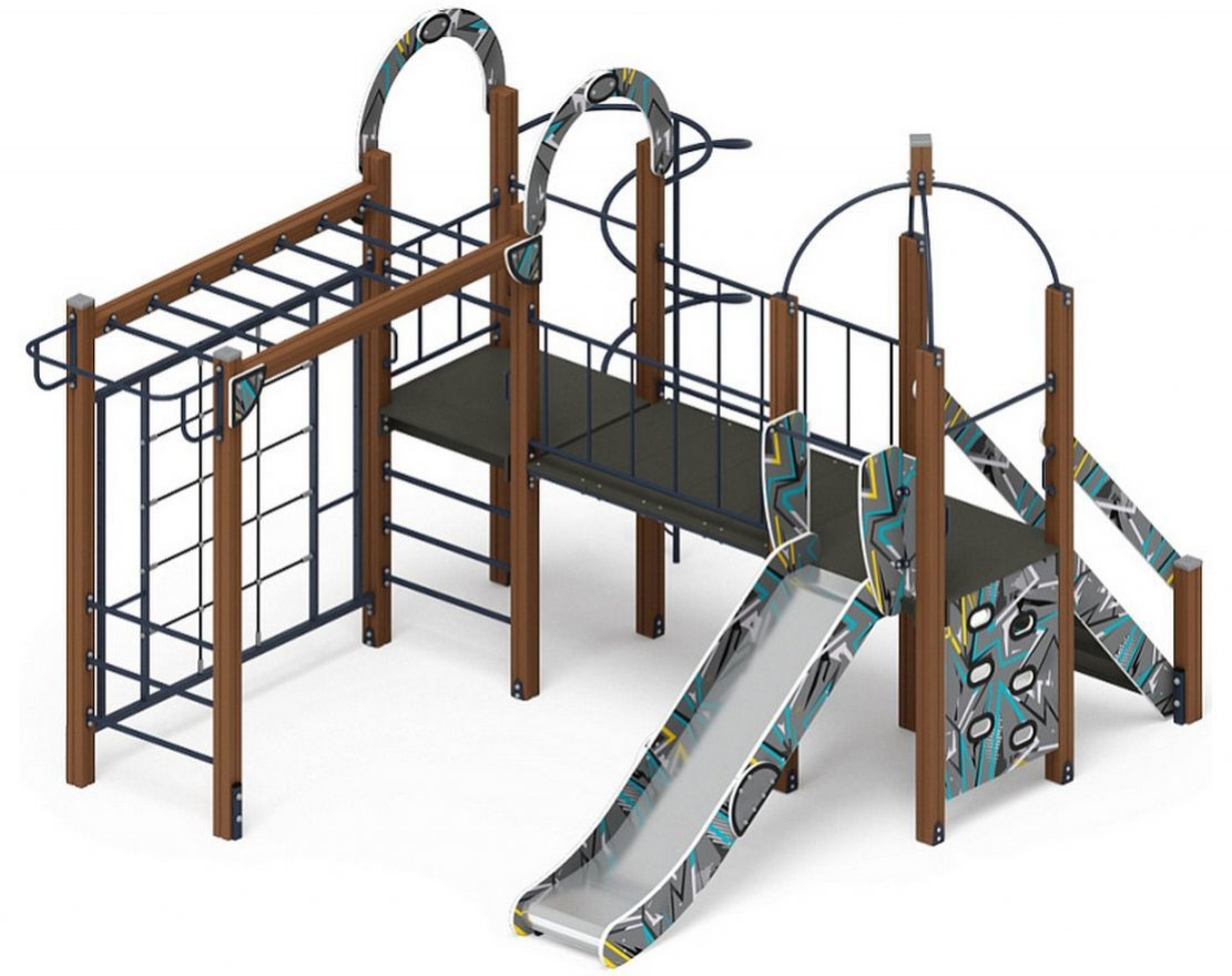 • Особенности комплектации: турник, рукоход, гладиаторская сетка, горка, скалодром, лестница