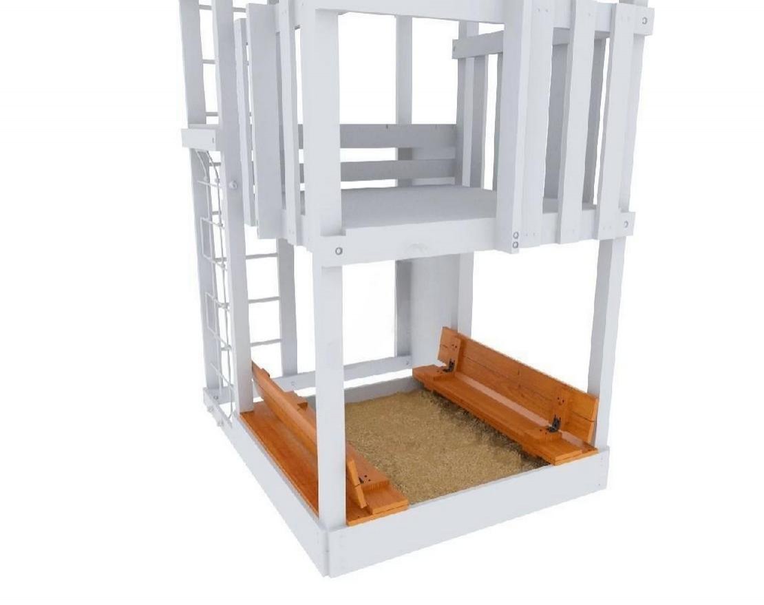 - При порывах ветра надёжно зафиксированная деревянная крышка не слетит с песочницы.