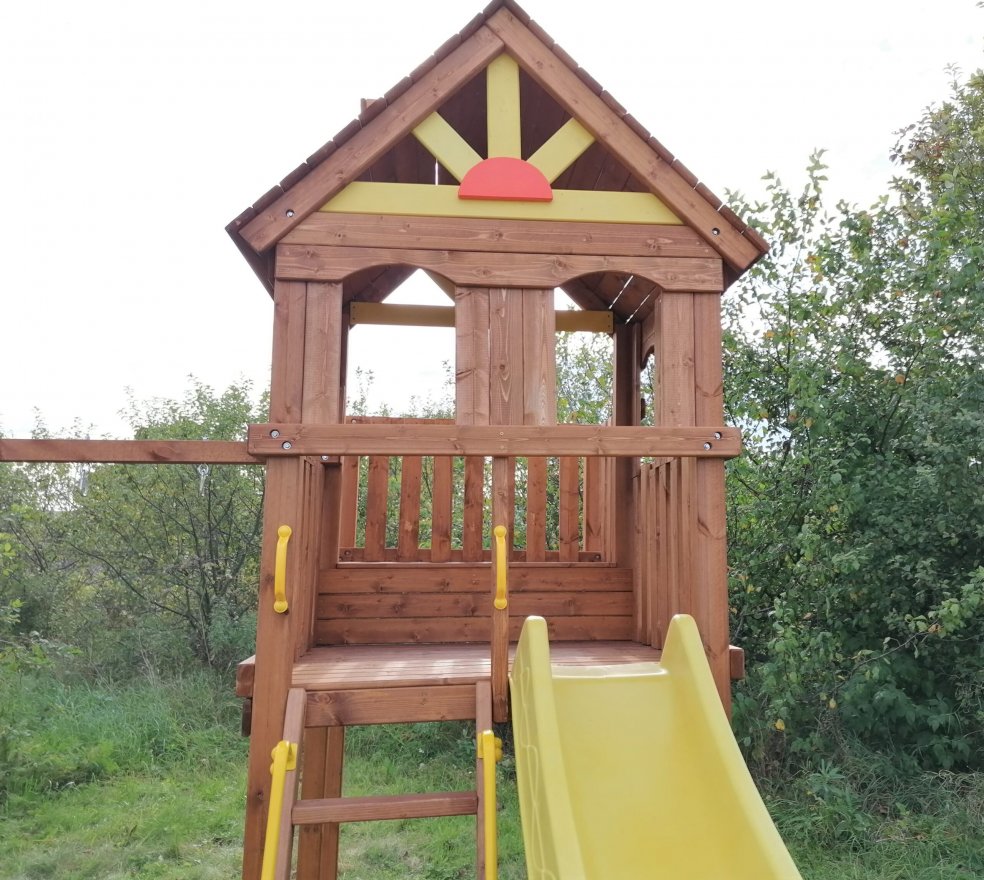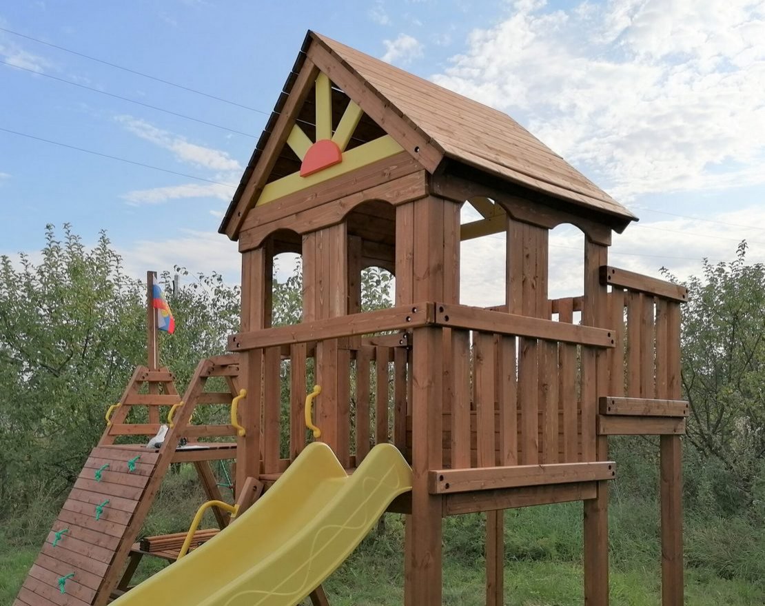 Добавляет законченность конструкции и совершенно меняет внешний вид детской площадки.