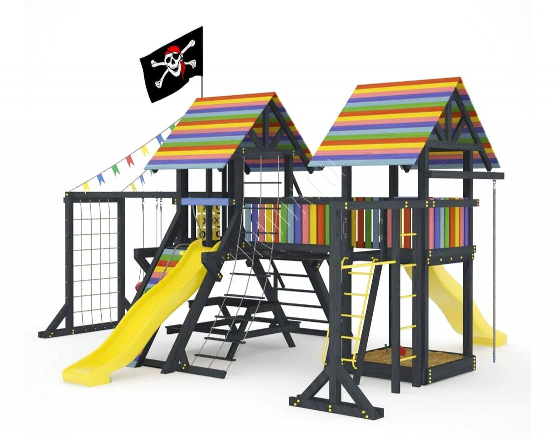 Детская площадка обладает довольно широким функционалом, предназначена для дачи, коттеджа.