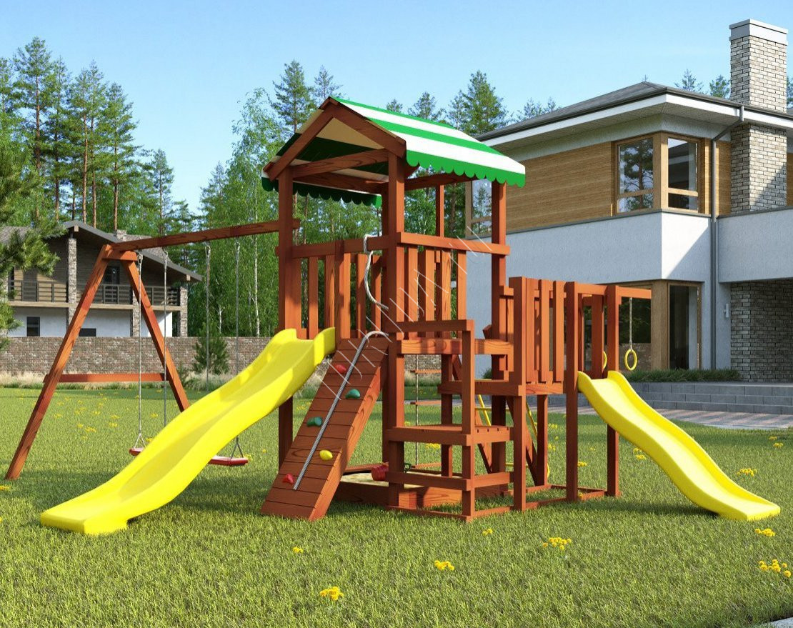 - Две башни разной высоты (0,9 м и 1,2 м) создают пространство для увлекательных игр.