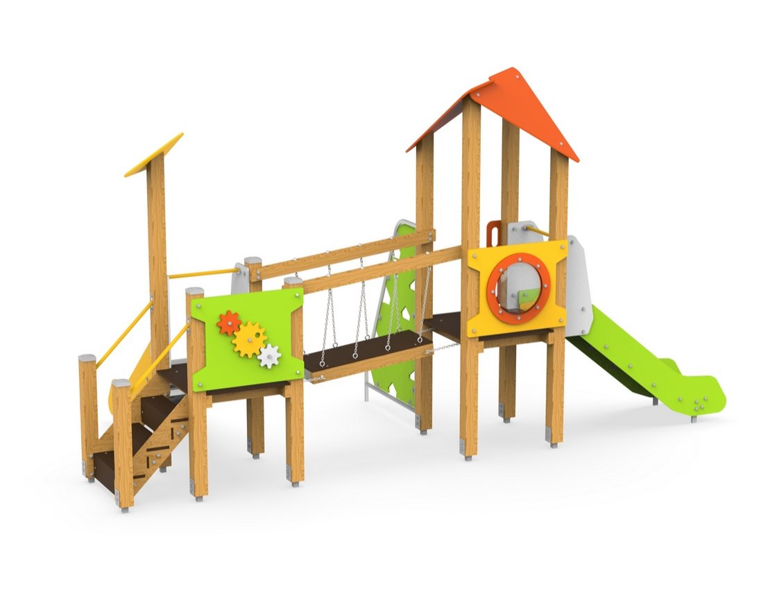 Детский игровой комплекс предназначен для организации детского досуга и физического развития на детских площадках, в детских садах, школах, парках, дворах и местах отдыха. Изделие представляет собой сборно-разборную конструкцию с декорациями из фанеры ФСФ.