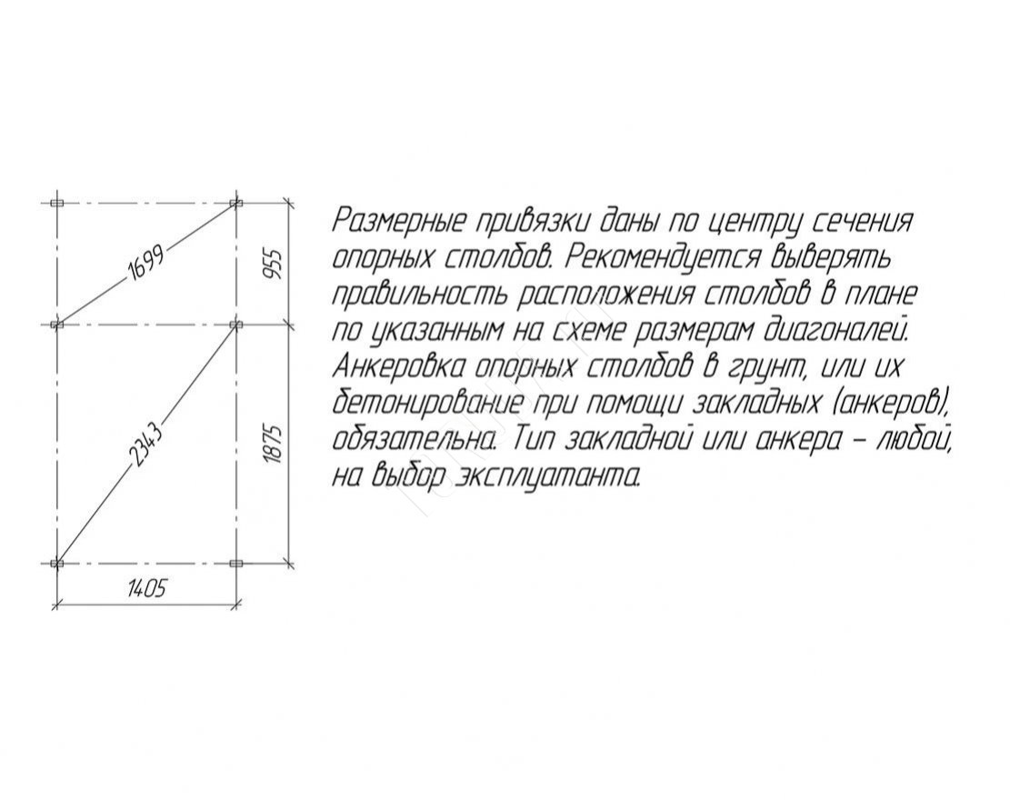 Для установки данной площадки рекомендуется закрепить её анкерами (4 шт). Анкера в комплект не входят, приобретаются дополнительно.