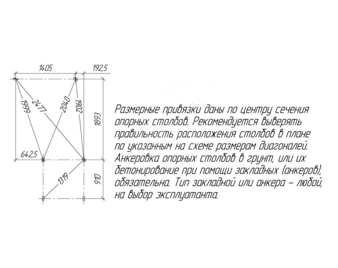 Для установки данной площадки рекомендуется закрепить её анкерами (4 шт). Анкера в комплект не входят, приобретаются дополнительно.