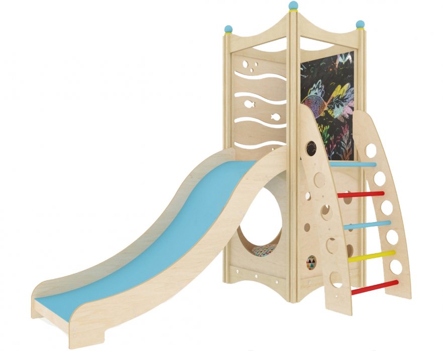 Каждый элемент наделён красочным оформлением, чтобы дети в процессе игры могли изучать основные цвета. Внутри домика малыши могут комфортно расположиться вместе с игрушками. Конструкция направлена не только на развитие физических способностей детей, но и совершенствование творческих данных: предусмотрено наличие грифельной доски. Выделяются и другие преимущества игрового домика: