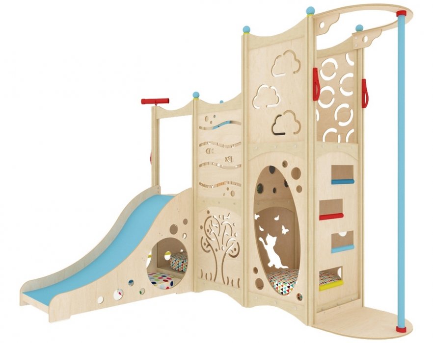 Представленная функциональная конструкция идеально подходит для многодетной семьи и для обустройства игровой зоны в общественных местах. Она предусмотрена для времяпрепровождения сразу нескольких человек возрастом от 2 до 7 лет. Многоуровневая конструкция в виде домика станет заветным местом, где можно поиграть, отдохнуть, уединиться и даже почувствовать себя звездой, стоящей на сцене.