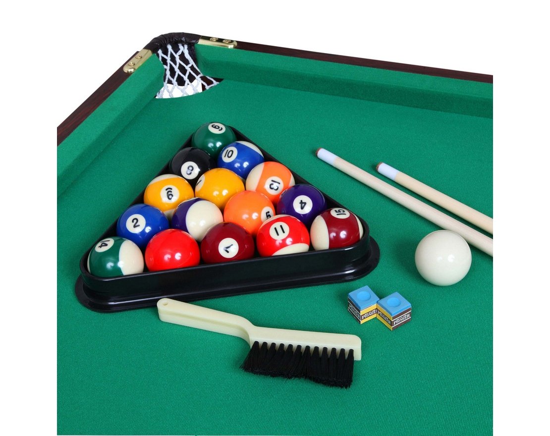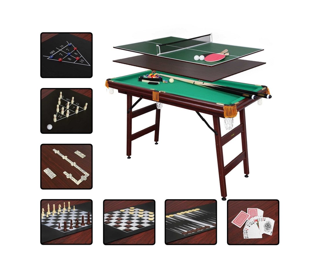 Бильярдный стол Fortuna Пул 4 фута 9 в 1 - это многофункциональный игровой стол, включающий 9 игр: американский бильярд, шашки, шахматы, нарды, настольный теннис (пинг-понг), кегли, шаффлборд, игральные карты и домино.