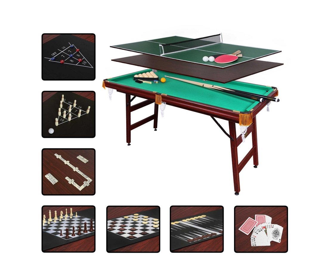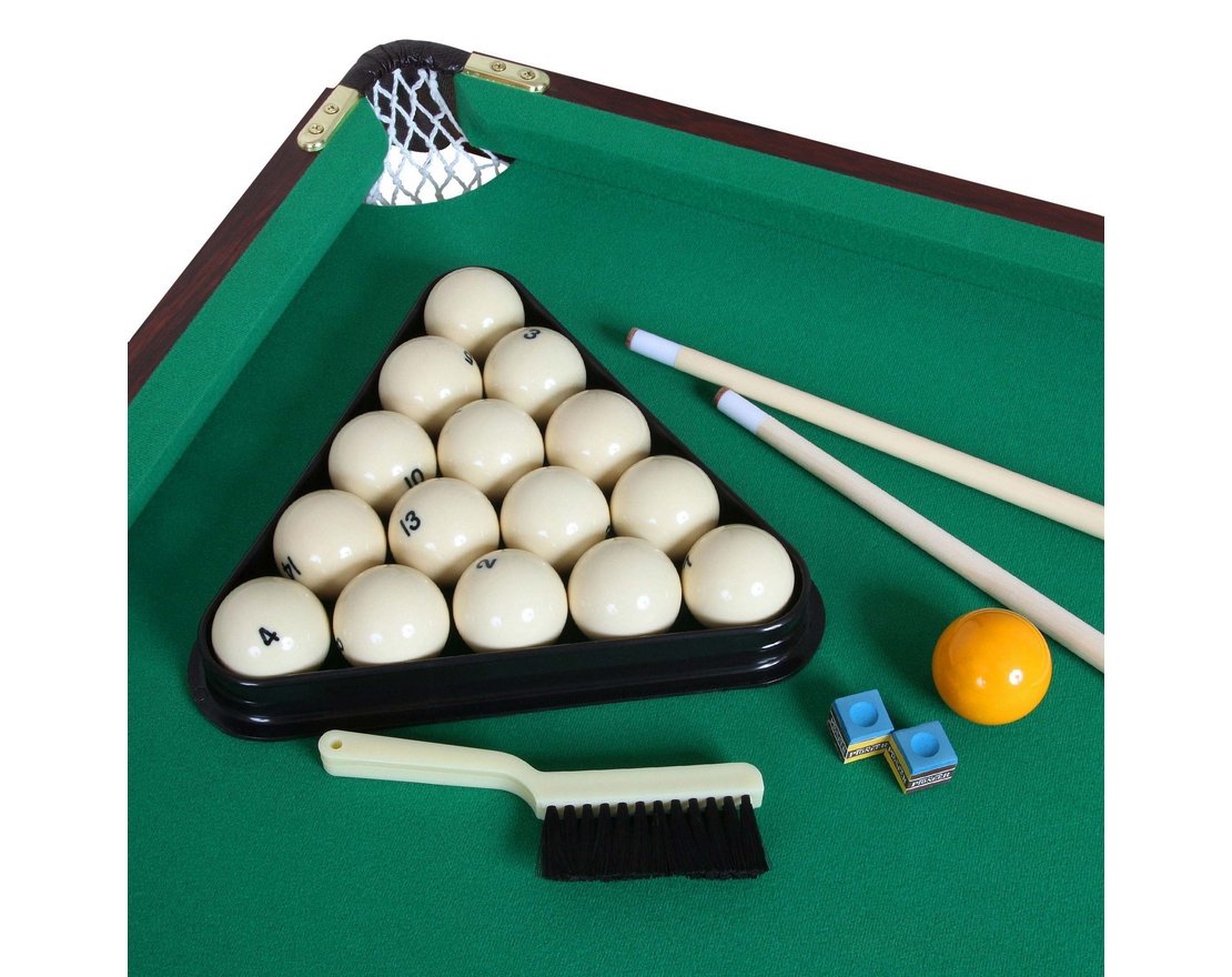 Бильярдный стол Fortuna Русская пирамида 5 футов 9 в 1 - это многофункциональный игровой стол, включающий 9 игр: русский бильярд, шашки, шахматы, нарды, настольный теннис (пинг-понг), кегли, шаффлборд, игральные карты и домино.
