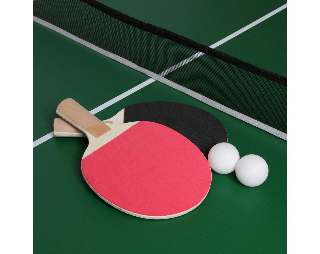 Обратная сторона теннисного игрового поля имеет ламинированную поверхность и может быть использована как столешница письменного или обеденного стола, а также как основание для дополнительных игр комплекта.