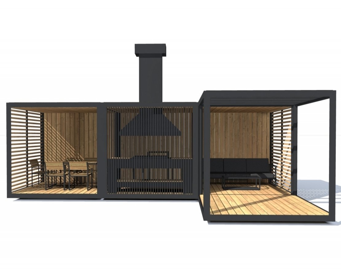 Современная беседка с мангалом и вытяжкой.
