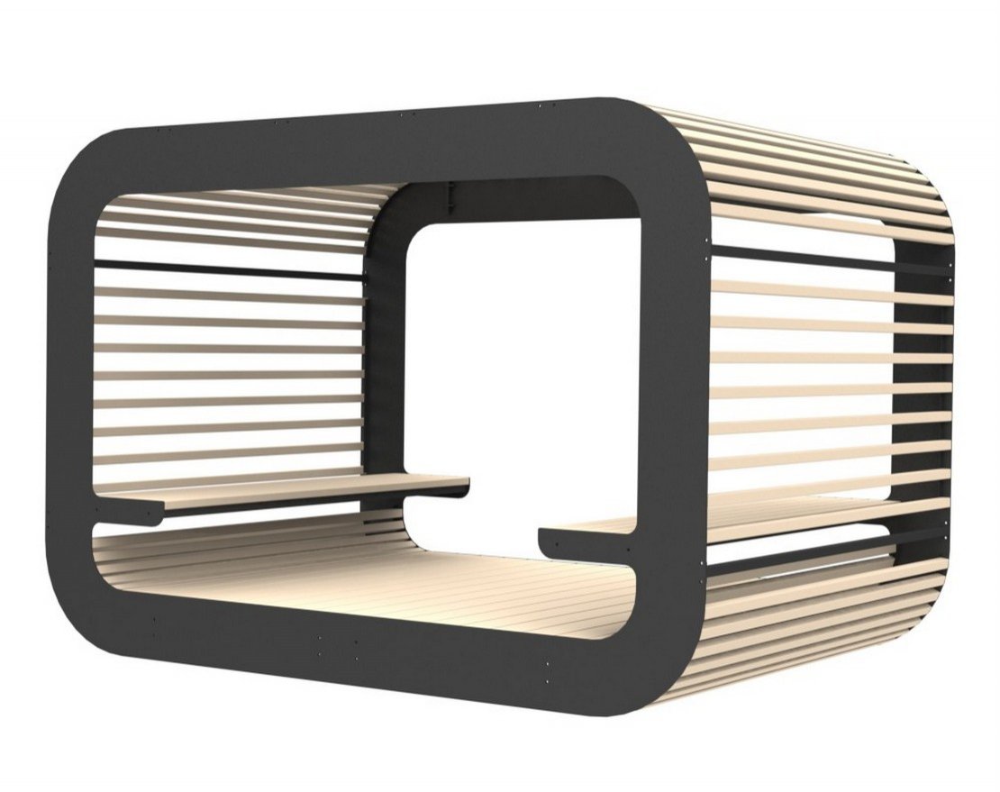 Парковый навес на металлическом каркасе с использованием натурального дерева (лиственницы). Устанавливается в парках, скверах, придомовых территориях и др.местах общественного пользования.