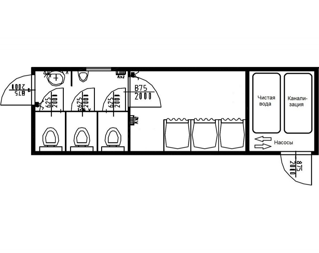 Комбинированный модуль автономный 3 туалета, 3 душа 311
