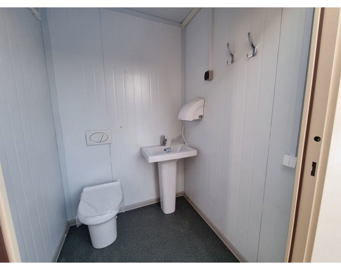 Этот автономный туалетный модуль снабжен двумя туалетными одноместными отделениями: для мужчин или для женщин, для маломобильных групп населения (МГН), а так же техническим помещением с насосным оборудованием и емкостями. Преимущество модели заключается в скрытой прокладке коммуникаций по воде и канализации, которые не будут видны со стороны пользовательских помещений.