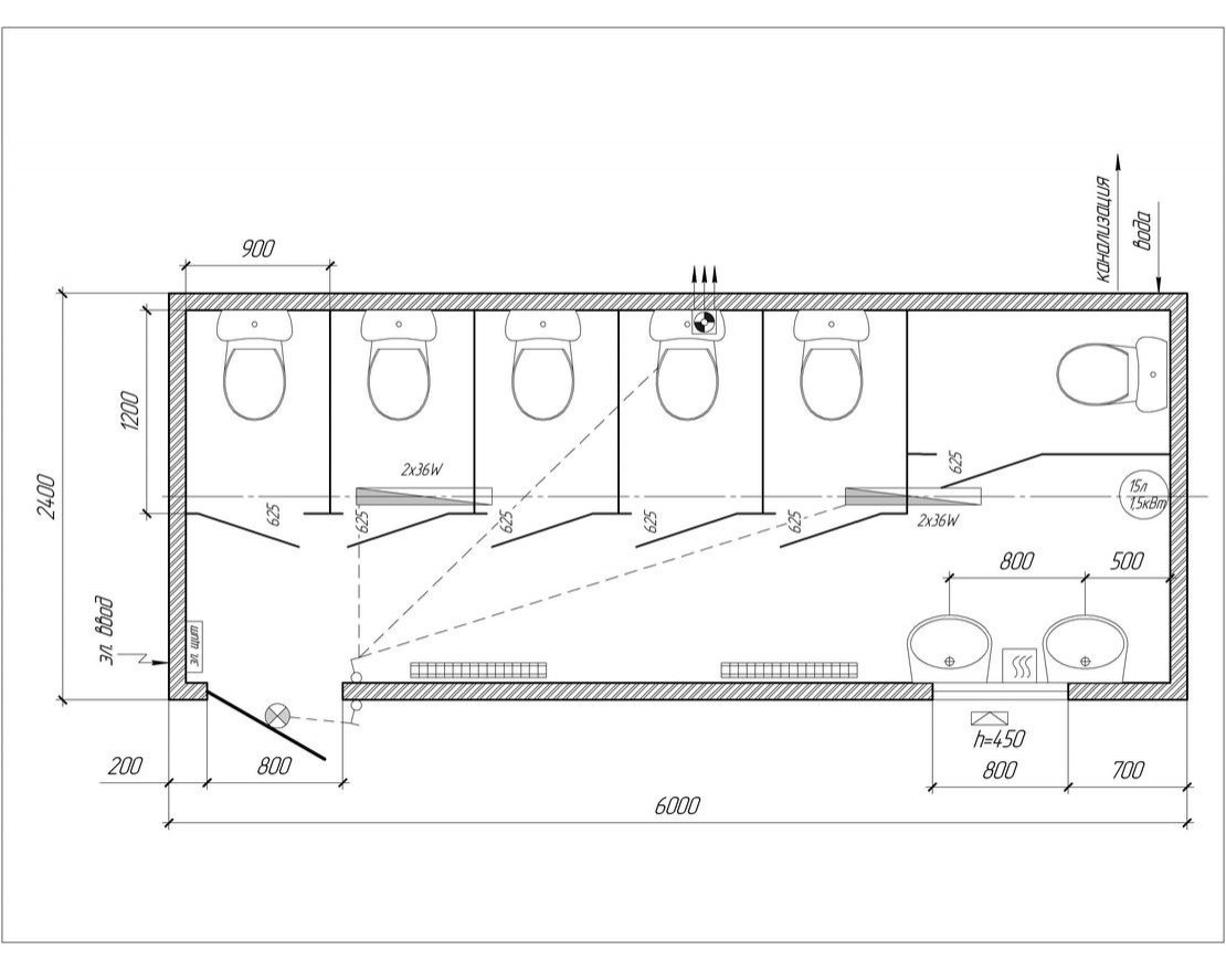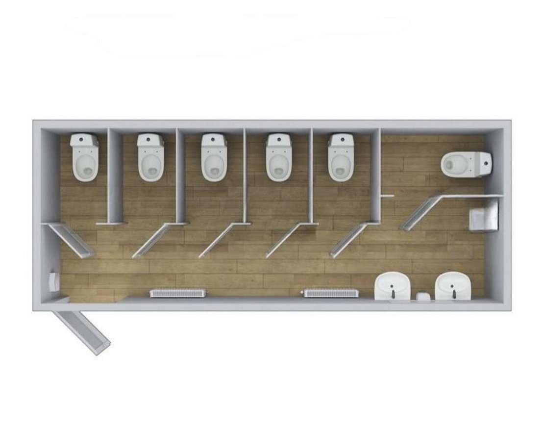 Данный туалетный модуль может быть использован как для посещения мужчинами так и женщинами. Имеет одно отделение на 6 посадочных мест. Модуль подходит для использования на базах отдыха, в детских лагерях, а так же при проведении общественных мероприятий.