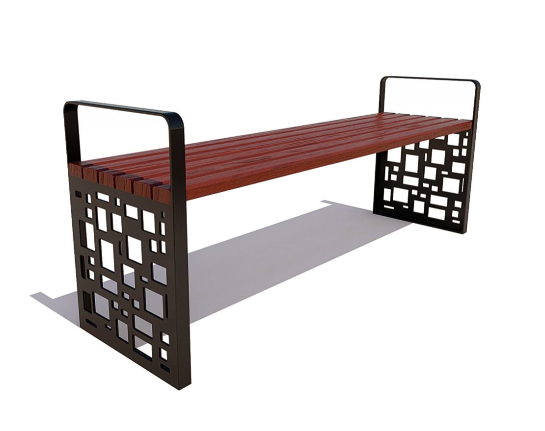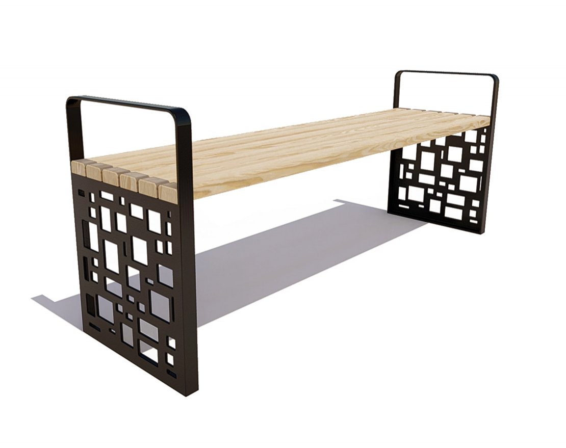 Каркас выполнен из листовой стали с применением лазерной резки. Покрыт порошковой полимерной краской. Стандартный цвет по умолчанию – черный муар. Возможность выбора цвета по шкале RAL. Сиденье и спинка: Брус из хвойных пород древесины, обработан экологичными инновационными лакокрасочными материалами, что подтверждает Свидетельство ЕвАзЭС. Стандартный цвет по умолчанию – палисандр. Возможность выбора цвета из палитры. Тип крепления: анкерный.