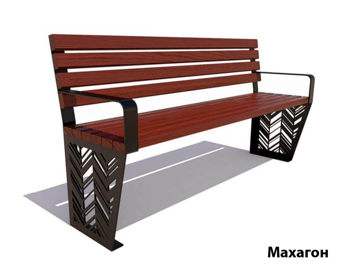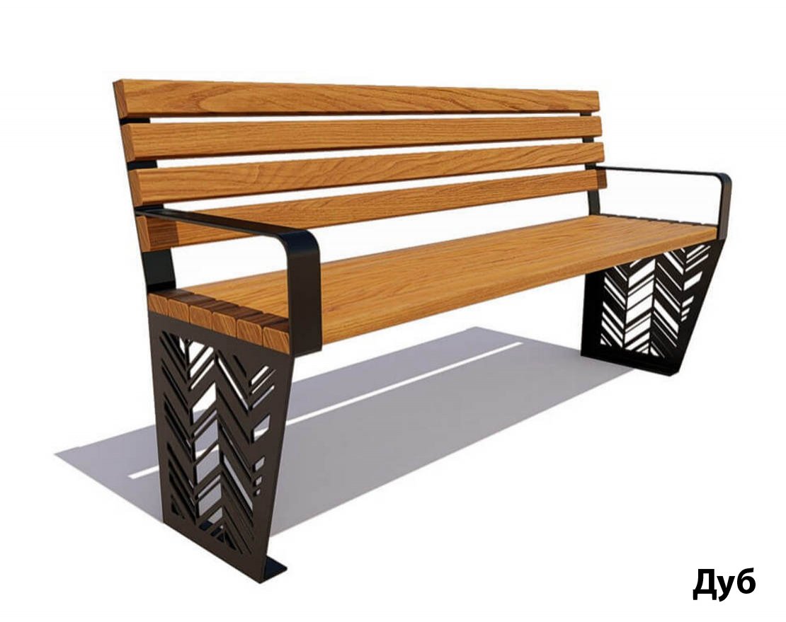По-армейски строгая скамейка «Гарнизон» для большего комфорта оснащена слегка наклоненной спинкой и подлокотниками. Декор опор представляет собой множество последовательно расположенных лычек. Отверстия вырезаны лазером.