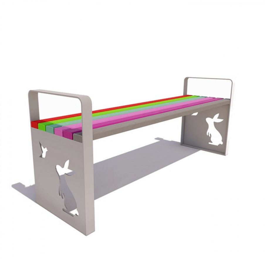 Скамейка создана для детских площадок, городских парков, частных домов. Имеет классическую форму и состоит из прочного металлического каркаса и лицевого покрытия из твердых пород древесины зимней заготовки. На детской скамейке могут комфортно разместиться от двух до пяти человек.
