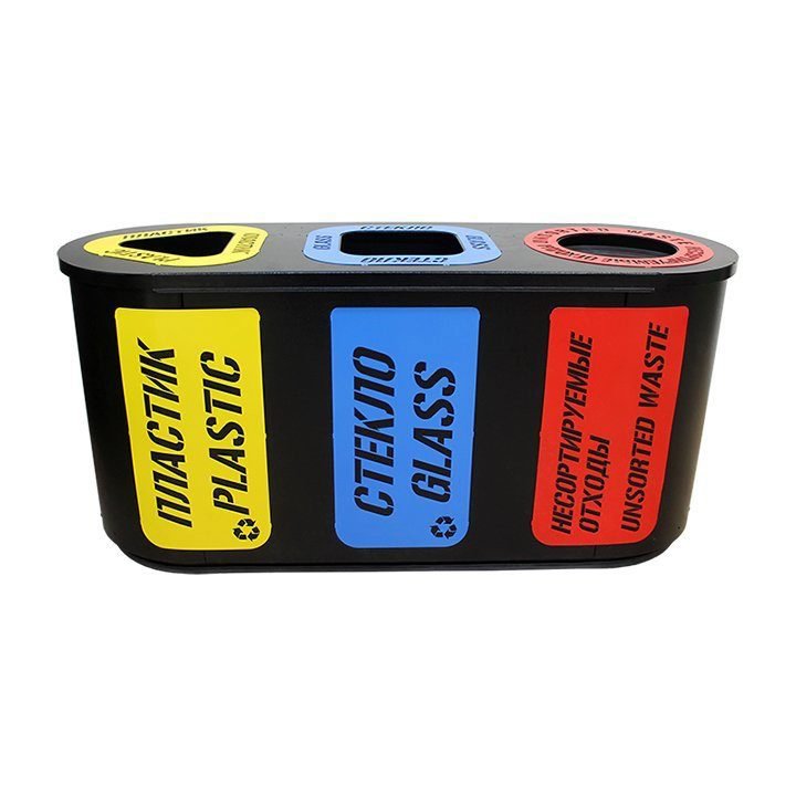 В стандартную комплектацию каждой секции входит: внутренний стальной бак с удобной ручкой, металлическая накладка с указанием вида собираемого мусора, окрашенная в жёлтый (пластик), красный (несортируемые отходы) или синий (стекло) цвет.