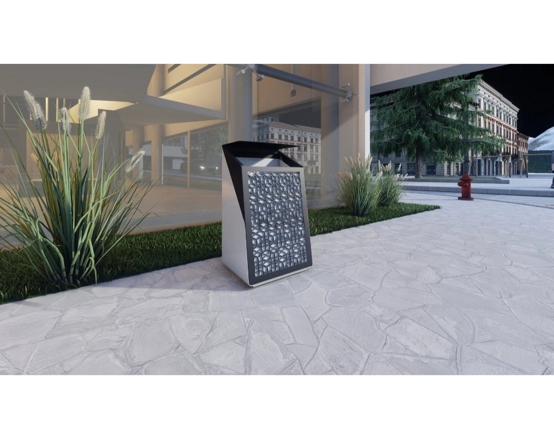 Создавать комфорт на улицах, в парках и других общественных местах помогают практичные урны, которые, к тому же, замечательно вписываются в городской ландшафт. Уличная урна «Концепт Уно» выделяется необычным дизайном. Фронтальная часть стального корпуса декорирована ажурным орнаментом в виде геометрических мотивов. Такое дизайнерское решение визуально облегчает конструкцию. Другая изюминка модели — контрастное сочетание цветов. Фронтальная часть изделия, его крышка, расположенная под углом, и треугольные фрагменты по бокам отличаются по цвету от остальных частей. Купить урны «Концепт Уно» можно в двух цветовых вариантах.