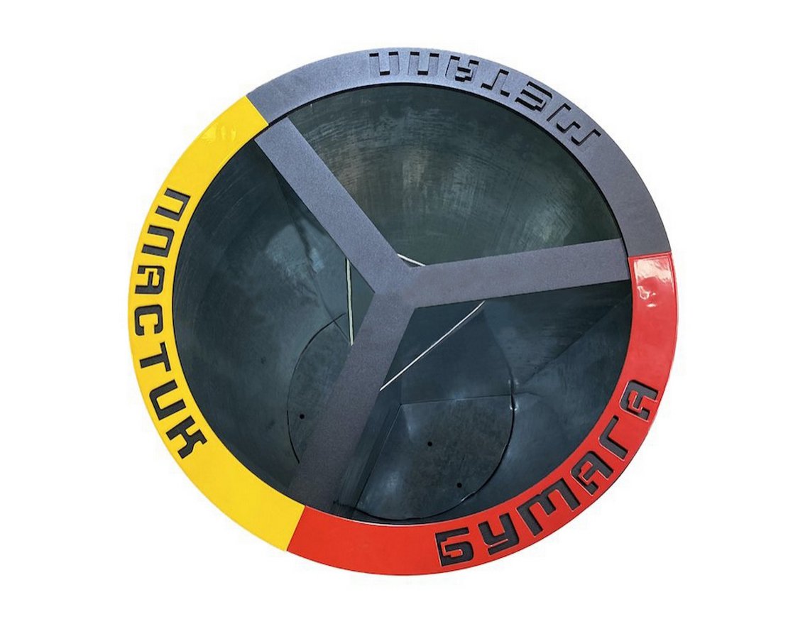 Варианты надписей: Бумага, Пластик, Стекло, Прочее, Металл.