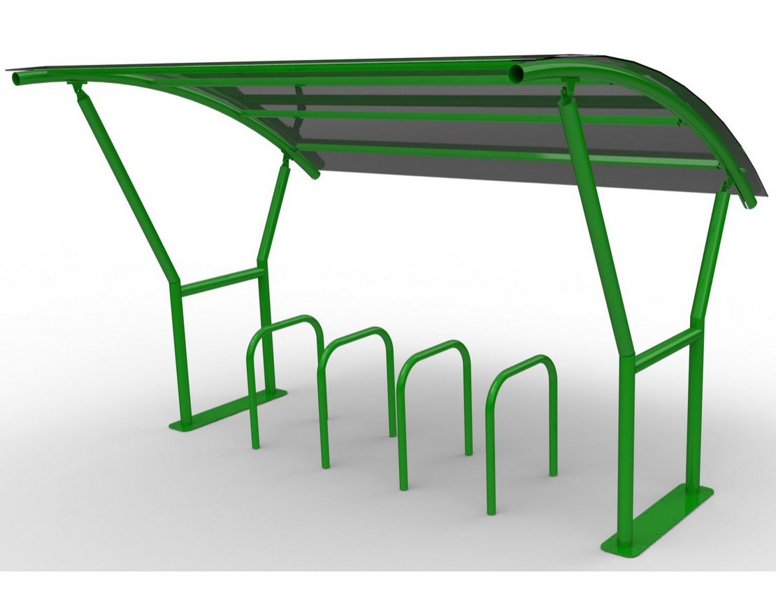 Велопарковка с навесом "Сити" устанавливается возле офисных зданий, торговых центров и других городских локаций. Обеспечивает упорядоченное размещение вело-транспорта, защищая от осадков и ультрафиолета.