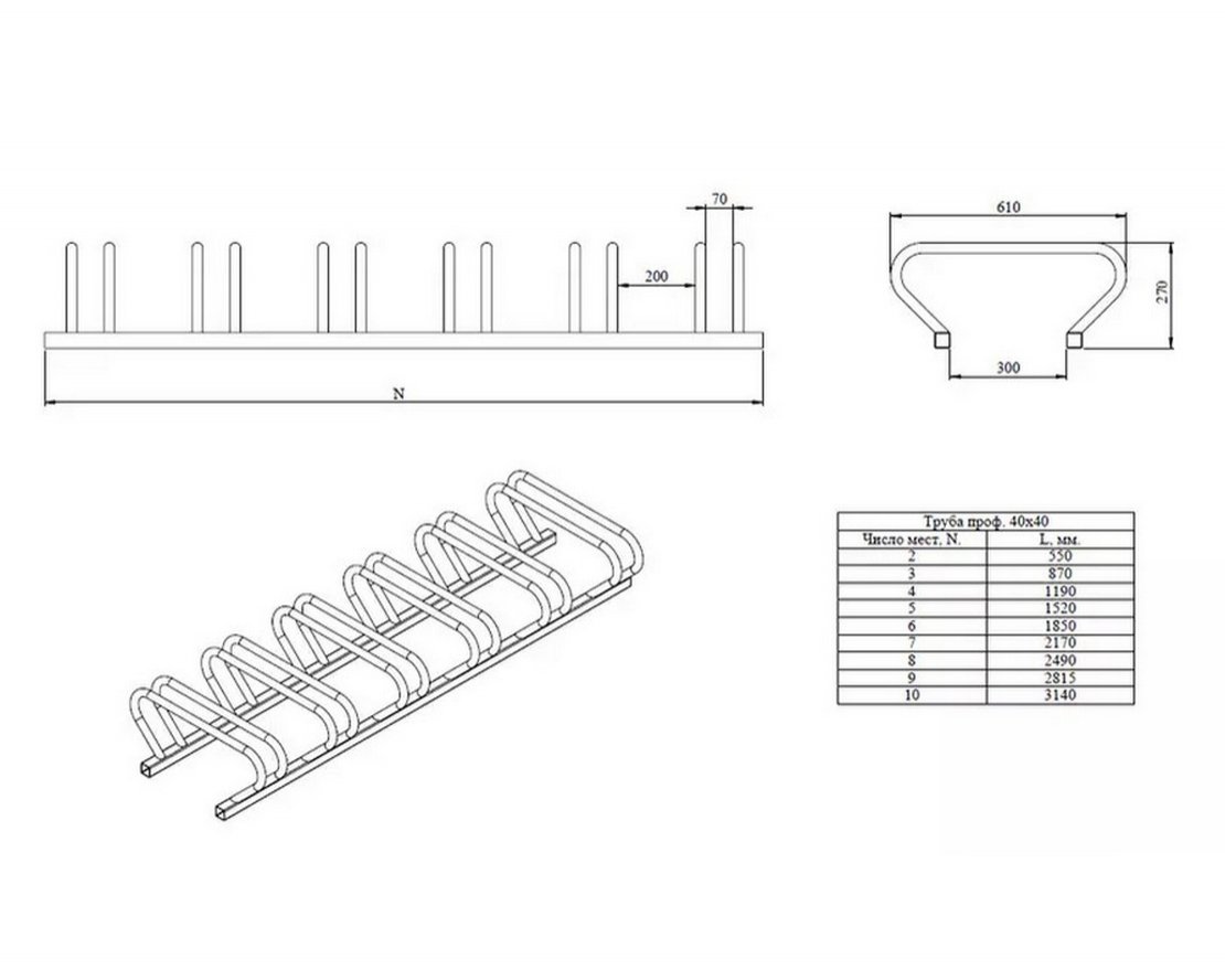 При изготовлении велопарковки на разное количество мест параметры длины: