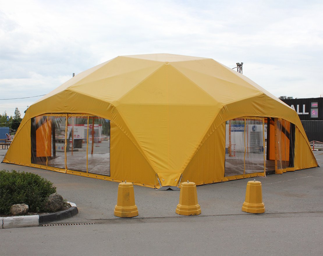 • Преимуществами квадрокупольных конструкций является их низкая стоимость (в сравнении с арочными шатрами аналогичного размера) и высокая мобильность — для транспортировки достаточно одной «газели». Процесс монтажа предельно прост и не требует привлечения грузоподъёмной техники и профильных специалистов.