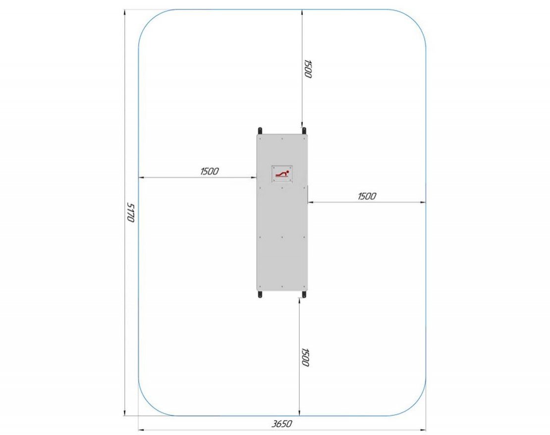 Занимаемая площадь с учетом зон безопасности и приземления: 5170 × 3650 мм