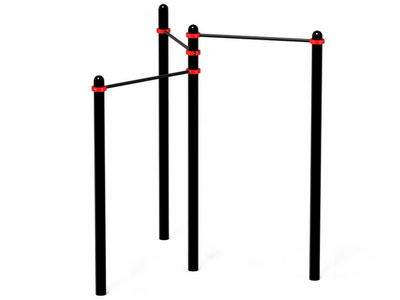 Высота опорных столбов составляет от 2000 до 2600 миллиметров. На них на высоте 2400, 2200 и 2000 мм закрепляются перекладины для подтягиваний, которые удерживаются стальными хомутами. Благодаря такой конструкции их высоту можно отрегулировать в соответствии с требованиями занимающихся.