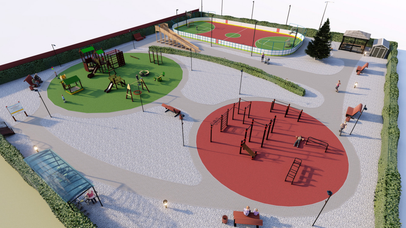 Подбираются нужные размеры для площадки, варианты её наполнения