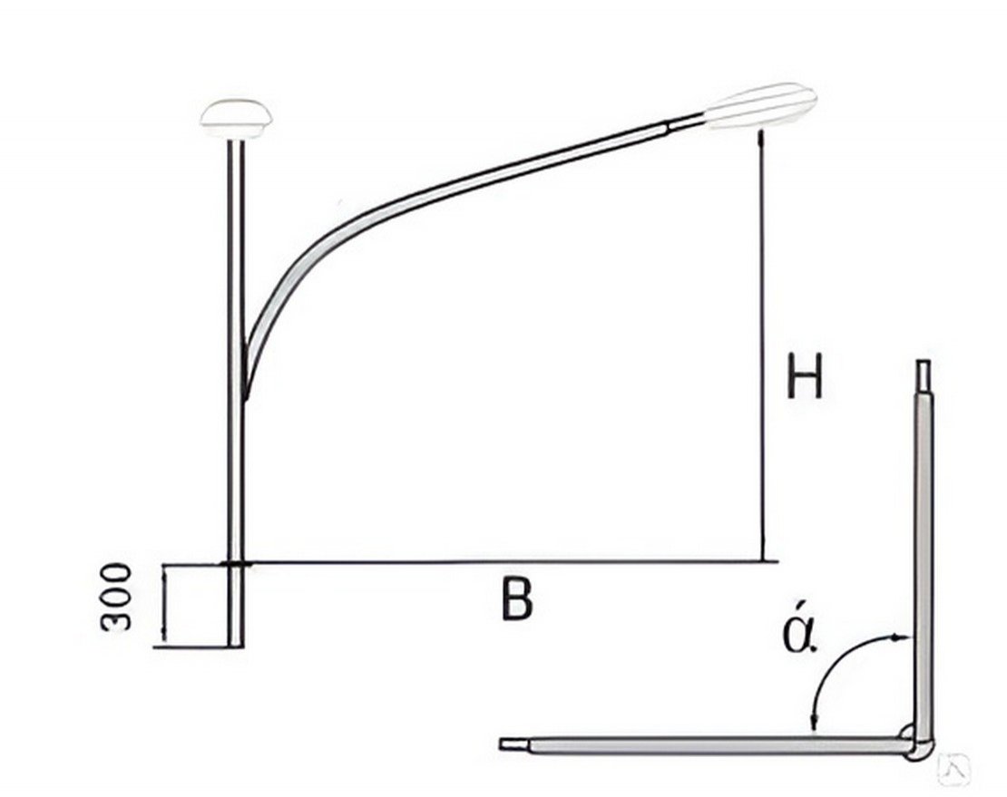 Кронштейны представляют собой сборную металлическую конструкцию, состоящую из одного или нескольких рожков (в зависимости от требуемого количества устанавливаемых осветительных приборов), с определенными линейными размерами высоты, вылета и с требуемым типом посадочного места (в зависимости от типа опоры).