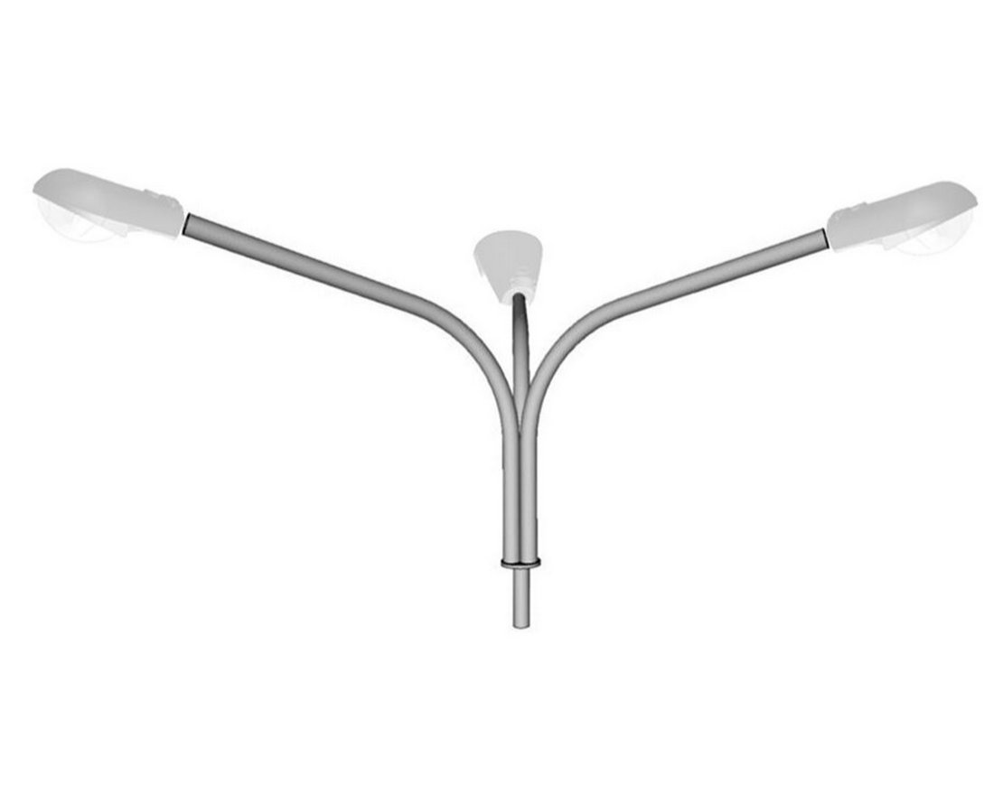 Кронштейны представляют собой сборную металлическую конструкцию, состоящую из одного или нескольких рожков (в зависимости от требуемого количества устанавливаемых осветительных приборов), с определенными линейными размерами высоты, вылета и с требуемым типом посадочного места (в зависимости от типа опоры).